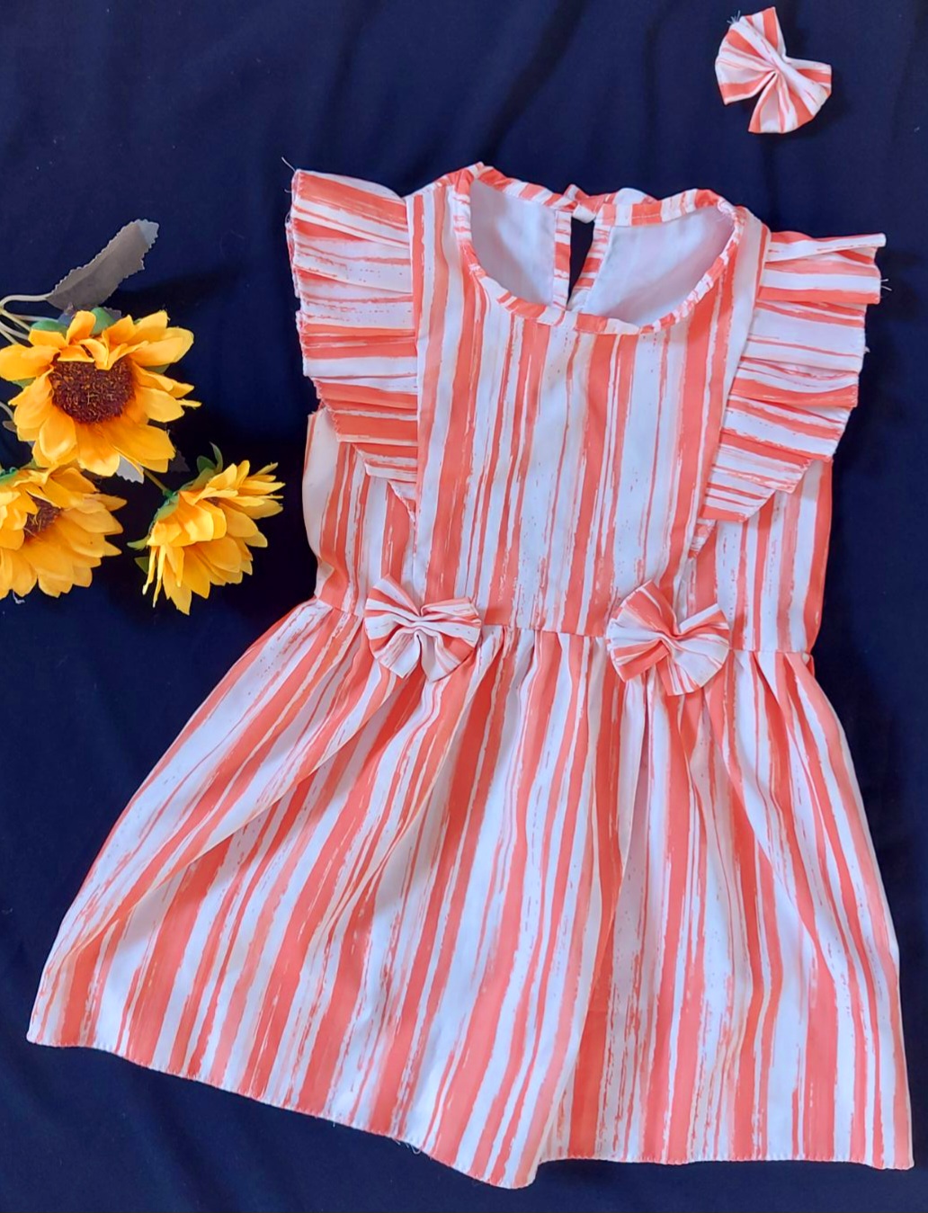 دستهبندی: بچگانهجنس : کرپ بوگاتی نرم همراه با گل سر ست شدهسایز : مناسب از ۳تا۴ سال.قد کار ۵۰: پهنای ۳۰ که کمربند پشت تنظیم میشود.