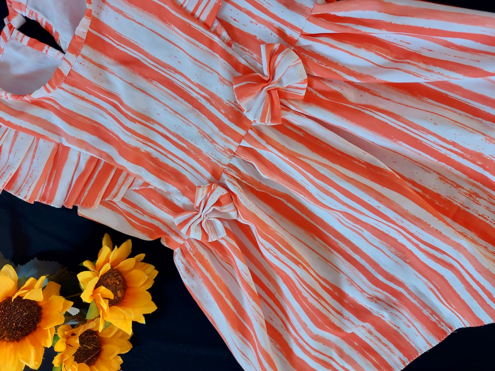 جنس کرپ بوگاتی نرم همراه با گل سر ست شدهسایز مناسب از ۳تا۴ سال.قد کار ۵۰پهنای ۳۰ که کمربند پشت تنظیم میشود.